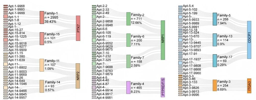 利用SPARK-seq,研究团队在单次实验中深度分析了8000多个单细胞,从5000多条序列中精准锁定了8种肿瘤关键膜蛋白的特异性探针。该技术实现了即使是表面丰度相差上百倍的极低丰度靶点,也能被同时识别。并且首次实现了在天然细胞环境中,通过基因扰动直接建立适体与靶点的“因果关系”,有效克服了传统实验中因膜蛋白构象失真导致靶标鉴定难的问题。