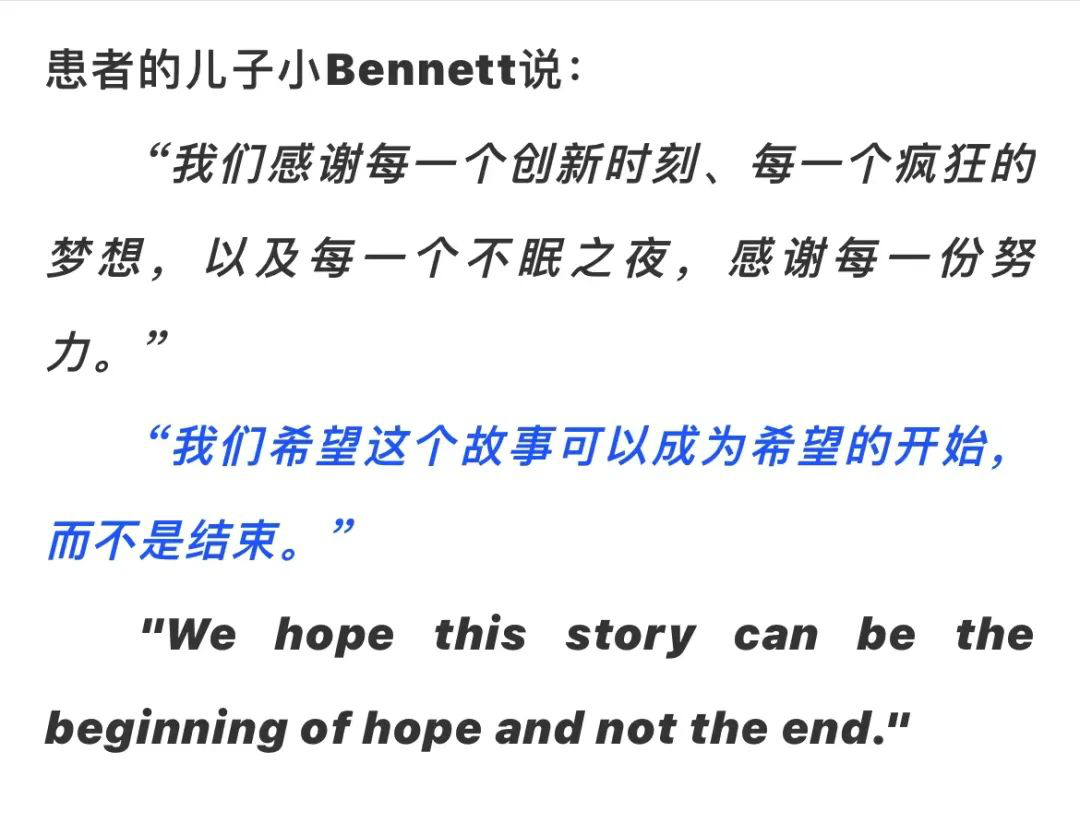 该中心说,在术后几周,贝内特体内的移植心脏运转良好,没有排异反应迹象。他与家人一起生活,接受了帮助恢复体力的物理治疗。但数天前贝内特的病情开始恶化。医院在明确其没有康复希望之后,给予了贝内特姑息治疗。贝内特临终前几小时仍能与家人交流。