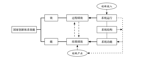 进一步,契合国家创新体系的复杂系统特征,国家创新体系效能需要完善的系统结构支撑,达到良好的系统运行状态,充分实现系统功能。由此,本文从系统结构、系统运行、系统功能三个维度分别对“能”与“效”进行解析(如图1所示)。“能”反映的是国家创新体系的结果绩效,体现了国家创新体系的能力水平;“效”反映的是国家创新体系的过程绩效,体现了国家创新体系运行过程中的有效性。在国家创新体系效能的生成机制中,过程绩效与结果绩效并不是相互独立的,两者是相互关联统一的,过程绩效的优劣直接影响结果绩效水平,结果绩效也能够通过反馈机制影响过程绩效的提升。