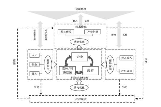 国家创新体系的“能”是整体效能的核心。从结果绩效的角度理解,“能”表现为其系统功能实现水平与对外竞争能力水平。根据系统理论,系统功能是由系统结构决定的,结构是功能的基础,良好的功能需要合理的结构来提供,国家创新体系的功能实现也与其结构布局休戚相关。国家创新体系拥有复杂的系统结构,是嵌入到创新环境中的政府、企业、大学、研究院所、中介机构等主体为了一系列共同的社会经济目标通过建设性地相互作用而构成的有机复杂网络,其结果绩效是主体自身的创新功能以及通过不同主体间复杂的反馈与相互作用所实现的整合功能在多个维度的叠加。在国家创新体系中,各主体拥有差异化的创新资源,互相联系,资源互补,各主体间的协同创新网络是各主体为完成共同目标、实现效益最大化而建立的良性协作关系,是国家创新体系内各主体协同创新、实现创新发展的基础。Etzkowitz和Leydesdorff提出的大学-产业-政府“三螺旋”理论(Triple Helix)强调大学、产业、政府三类机构在创新活动中的相互作用,充分阐述了多主体创新系统是以沟通和互动为基础的,主体间的相互作用是推动系统效能提升的根本动力。此外,国家创新体系各主体各司其职,充分发挥各自的功能,也是这一多主体复杂系统功能实现的基础。具体而言,企业作为创新的主体在国家创新体系中发挥着重要的作用,其获取外部知识、整合并组织生产的方式是实现创新的核心。高校与研究机构主要扮演着知识供给的角色。政府、中介组织等助力不同主体间建立或维持连接关系,在加速要素(人、财、物、信息)多方向、多层次流动方面发挥重要作用。国家创新体系结构与功能的相互依赖表明,要通过优化结构来提升相应的功能。一方面,国家创新体系各主体形成各司其职、充分协同的系统结构,推动“体系化能力”提升;另一方面,各主体优化自身结构以提升自身能力,推动“重点突破能力”提升,从而从两个维度提升国家创新体系结果绩效。