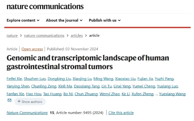 11月3日,中国科学院上海营养与健康研究所王跃祥团队、华大基因智惠医学研究院吴逵团队和上海交通大学附属仁济医院曹晖团队在Nature Communications在线发表了题为Genomic and Transcriptomic Landscape of Human Gastrointestinal Stromal Tumors的研究论文。该研究提供了胃肠间质瘤基因组和转录组全景图,提出了基于多组学的分子分型,鉴定出新型抑癌基因YLPM1, 为GIST的发病机制和精准治疗提供了新的视角和策略。