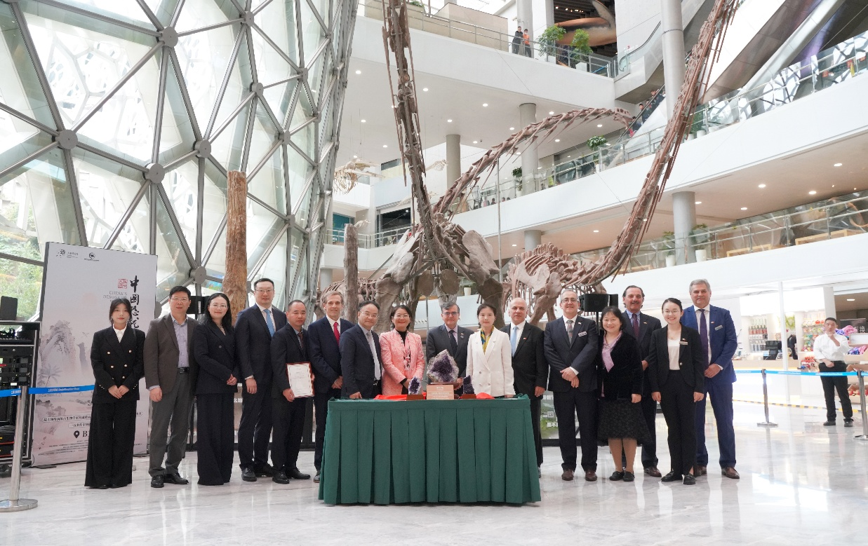 11月7日,乌拉圭紫水晶捐赠仪式于上海自然博物馆(上海科技馆分馆)举行。上海市科学技术委员会副主任黄红、上海科技馆馆长倪闽景,乌拉圭驻华大使阿尼瓦尔·卡夫拉尔(Aníbal Cabral)、乌拉圭驻上海总领事马塞罗·马龙(Marcelo Magnou)、乌拉圭驻华机构相关代表,市科委科普与科技传播处、科技合作处及上海科技馆有关部门负责人出席仪式,与现场观众一同见证三块来自乌拉圭阿蒂加斯省的珍贵紫水晶矿石正式落户上海自然博物馆,成为连接中乌两国的璀璨自然与科普文化的崭新纽带。