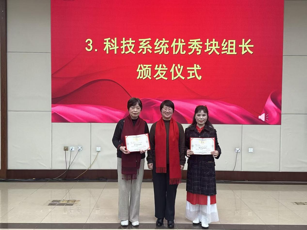 活动中举行了简朴而庄重的上海市科技系统优秀块组长表彰仪式。李晴暖为沈阳和程善兰两位退休职工颁发了荣誉证书,表彰他们在协助退管会联系服务工作中作出的积极贡献。