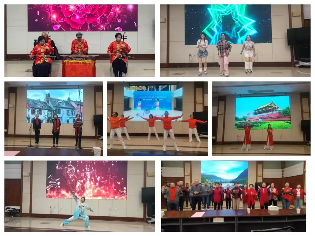活动最后,由在职职工、研究生和退休职工一起共同举行了2026年迎新春文艺展演,由原党办主任沈阳主持。展演在朱卫明、林梅青、周梅镇、刘杰飞的小乐队合奏《步步高+喜洋洋》中热闹开场,欢快激昂的旋律瞬间点燃现场气氛。随后,所舞蹈协会的青年职工和研究生带来了活力四射的热舞,充满青春活力;退休职工王勤、周嘉聪、包斗英的《故乡的小路》小组唱深情悠扬,唤起美好的回忆;王美弟、胡苏宁、李爱华、王明娟、叶兰花的柔力球表演刚柔并济、流畅舒展;程善兰、冯小妹的双人舞《美丽中国》舞姿优美,表达对祖国的深情礼赞;朱焯华的武术《剑出鞘》气势恢宏,彰显中华武术魅力。最后,李晴暖与全体演职人员、块组长及现场老同志齐声高唱《明天会更好》,将活动推向高潮,唱出了对祖国和研究所美好明天的共同期盼。